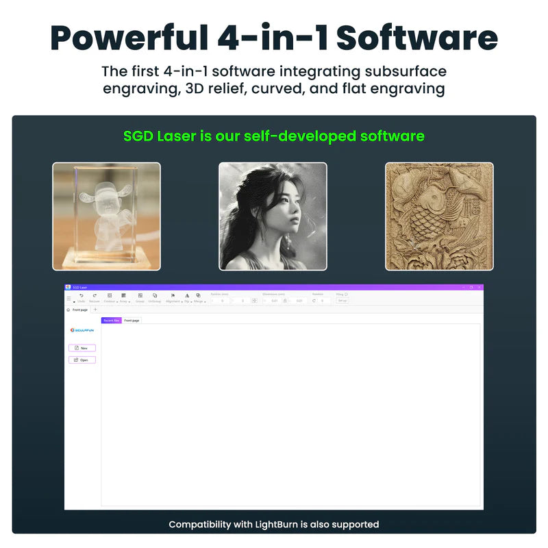 7. Multiple connectivity options: Supports Wi-Fi, USB, and Bluetooth. Compatible with the Sculpfun app for smartphones and the LightBurn and LaserGRBL programs on PCs.